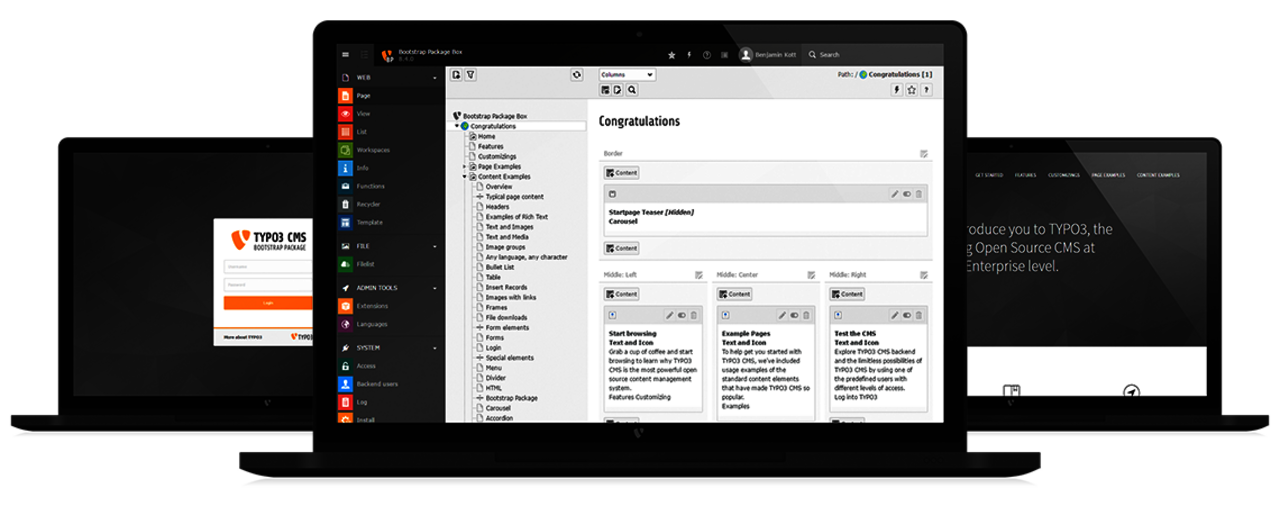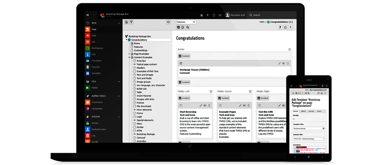 The administration interface, called TYPO3 Backend, can be managed from any modern web browser, including tablets and smart phones the same way. Publishing a small change on-the-go or working with tablet devices to add content has never been easier.